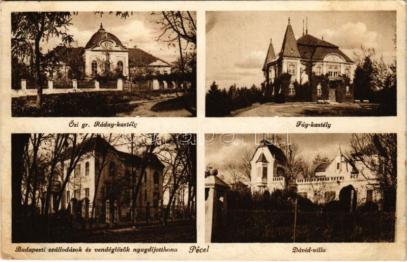 Pécel, Ősi gróf Ráday és Fáy kastély, Dávid villa, Budapesti szállodások és vendéglősök nyugdíjotthona (Rb)