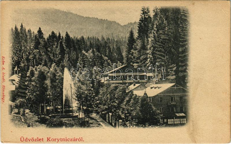 Koritnyica, Korytnica; Szökőkút, Schweiz nyaraló. Kohn A. kiadása / fountain, villa, spa (fl)