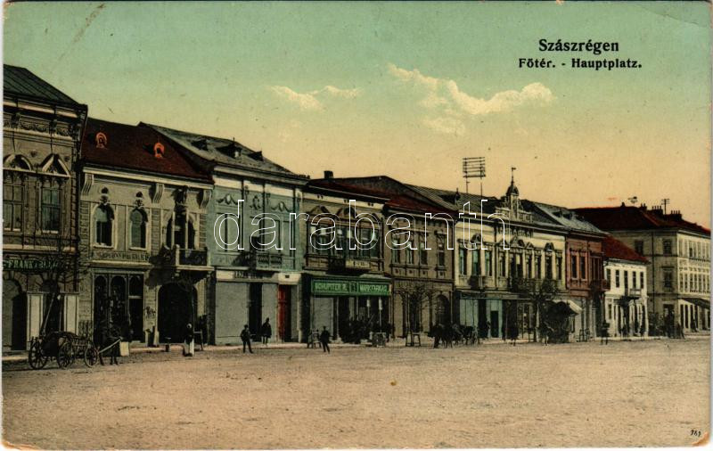 1909 Szászrégen, Reghin; Fő tér, Lázár, Frank, Schupiter R., Márk Fark... https://www.darabanth.com/en/434-Online-auction/434.0/Postcards/Transylvania~2000005/1909-Szaszregen-Reghin-Fo-ter-Lazar-Frank-Schupiter-R-Mark-Farkas-uzlete-Mark-szal~II2805817