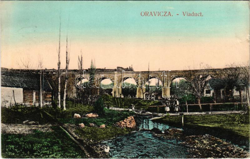 1910 Oravicabánya, Oravica, Oravicza, Oravita; vasúti híd, viadukt, gőzmozdony, vonat. Weisz Félix kiadása / railway bridge, viaduct, locomotive, train (kis szakadás / small tear)
