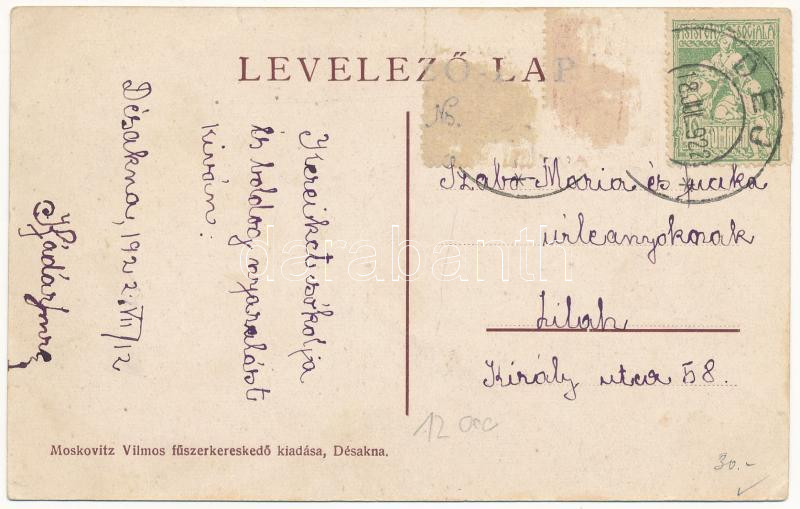 https://www.darabanth.com/en/434-Online-auction/434.0/Postcards/Transylvania~2000005/1922-Desakna-Ocna-Dejului-Bobovszky-Jozsef-udvartara-es-szoloje-Moskovitz-Vilmos-kiadasa-~II2806245