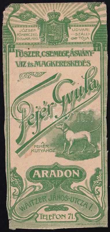 Pejér Gyula, Arad, fűszer, csemege, ásványvíz és magkereskedés, szeces...