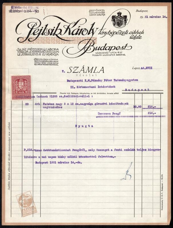 https://www.darabanth.com/en/435-Online-auction/435.0/Art-and-other-collectibles/Advertisement~500023/cca-1930-2-reklamos-fejleces-szamla-Pejtsik-Karoly-fenykepeszeti-cikkek-Weszely-Istvan-orv~II2819283