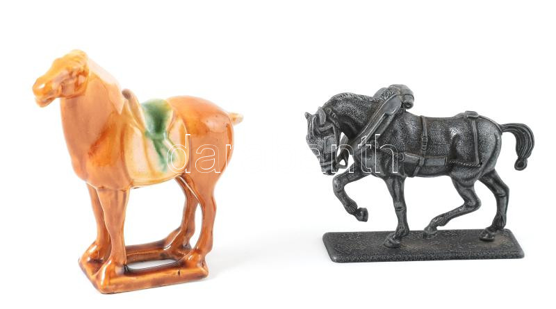 2 db lófigura, 1.kínai égetett agyag antik lófigura replikája, 2.német...