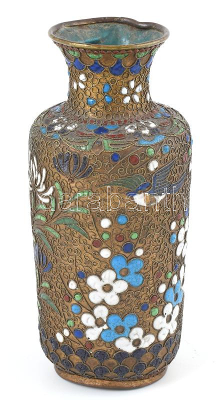 Antik Japán cloissonne váza, sérült, m: 15,5 cm