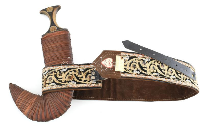 Dzsambia tőr, dísz övvel, észak Jemen, 1960 körül, szép állapotban, h: 35 cm