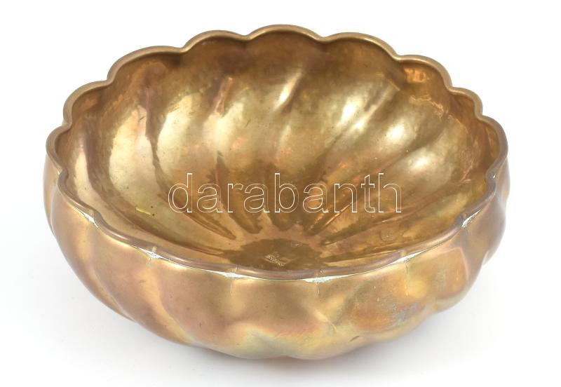 Olasz sárgaréz kaspó-tál, fodros kalapált díszítéssel, jelzett: Ottone, kis kopásokkal, d: 18 cm, m: 6 cm