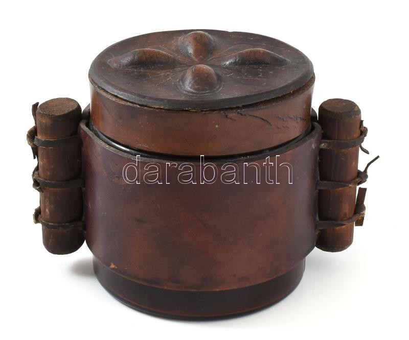 Retró üveg tároló, bőrrel bevont, hibátlan, m: 10 cm