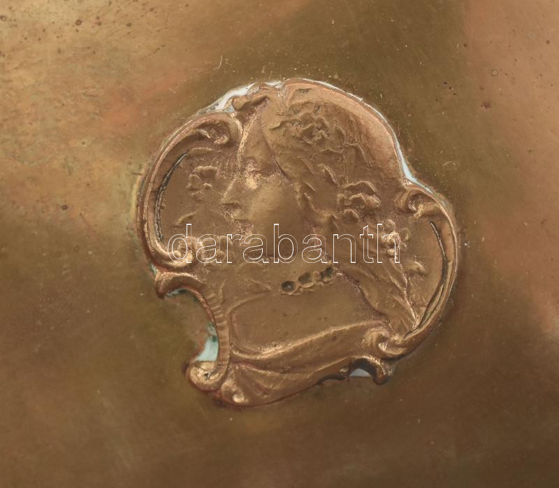 Szecessziós réz dobozka, jelzett, kis kopásokkal, 5x5 cm