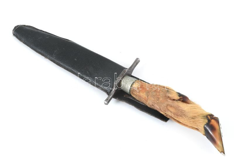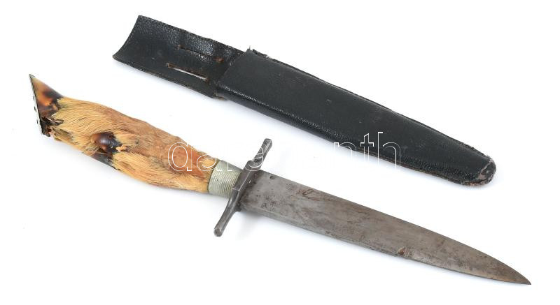 Vadászkés / tőr, őzláb markolattal, tokkal, jelzett a pengén, h: 27 cm