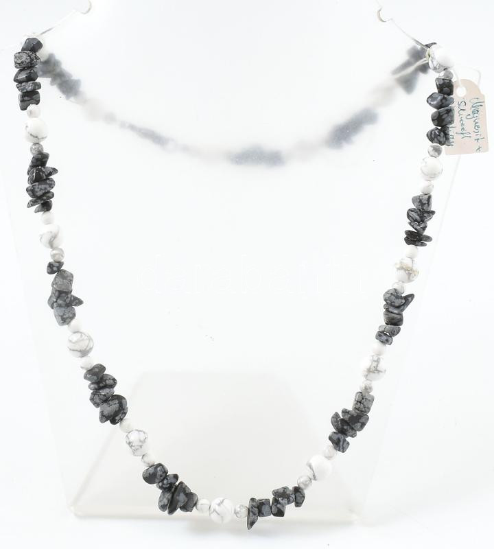 Magnezit és obszidián nyaklánc, h: 52 cm