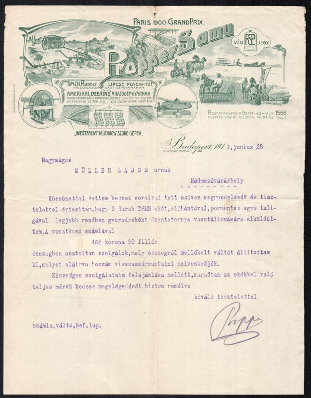 1911 Bp., Propper Samu mezőgazdasági gépek és eszközök gyári raktára, ... https://www.darabanth.com/en/435-Online-auction/435.0/Art-and-other-collectibles/Documents~500019/1911-Bp-Propper-Samu-mezogazdasagi-gepek-es-eszkozok-gyari-raktara-dekorativ-szecessziC3~II2820314