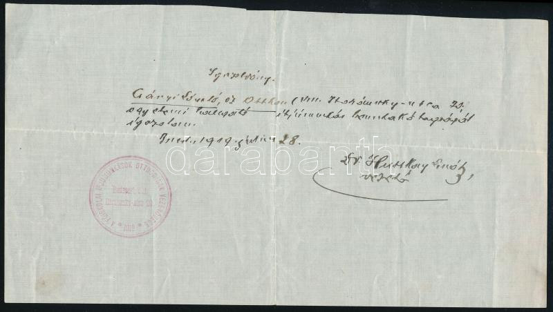 1919.VI.28. Bp., a Főiskolai Ifjúmunkások Otthonának Vezetősége által ...