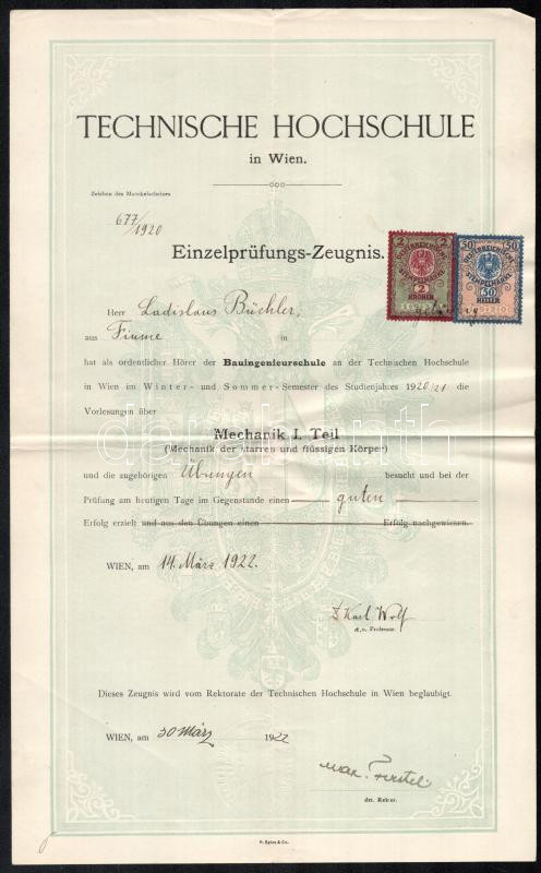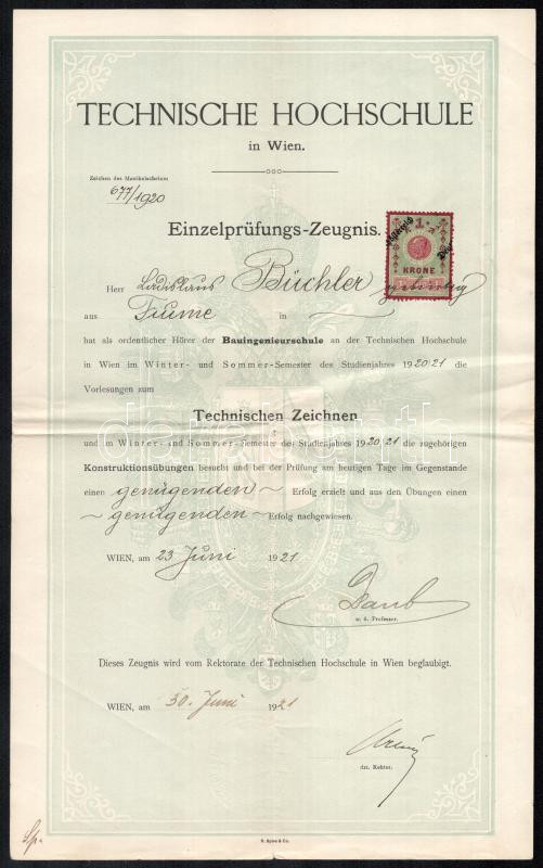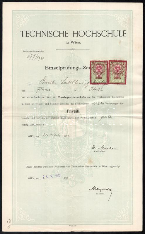 1921-1923 5 db okmány osztrák illetékbélyegekkel