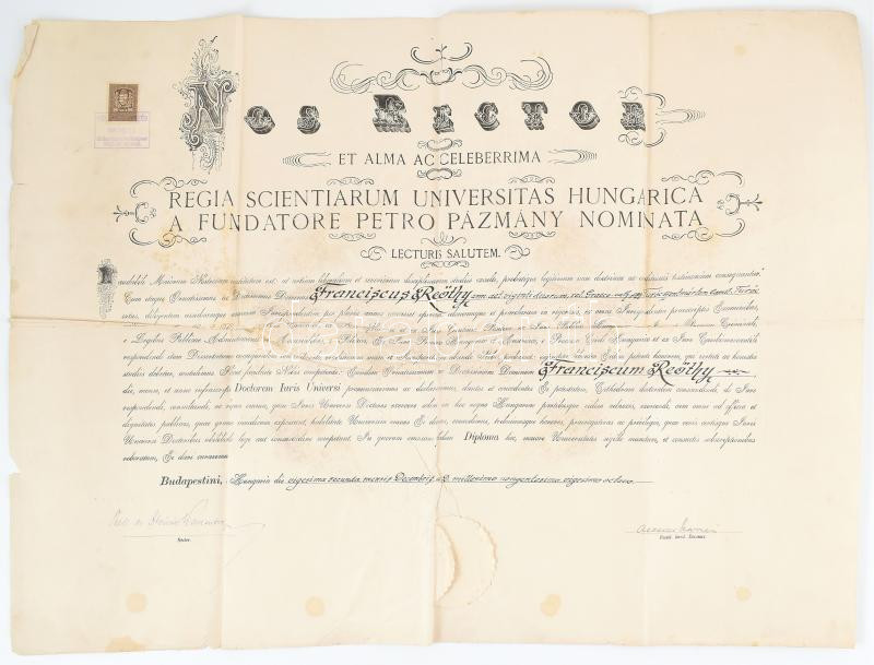 1928 A Pázmány Péter Tudományegyetem jogi doktori diplomája, szárazpecséttel