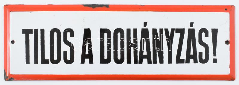 Dohányozni tilos zománc tábla, sérüléssel, 30×10 cm