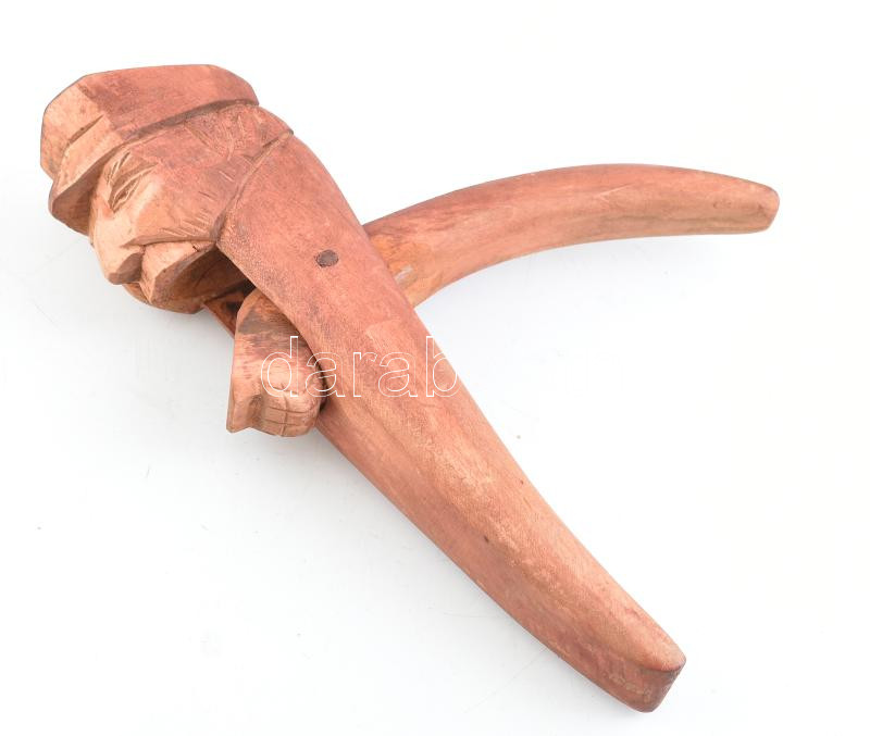 Figurális faragott fa diótörő, kopott, h: 24 cm