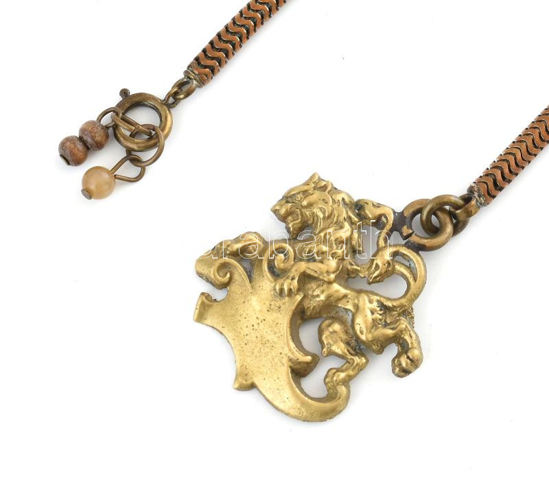 Oroszlános óralánc, kopott, h: 63 cmcm