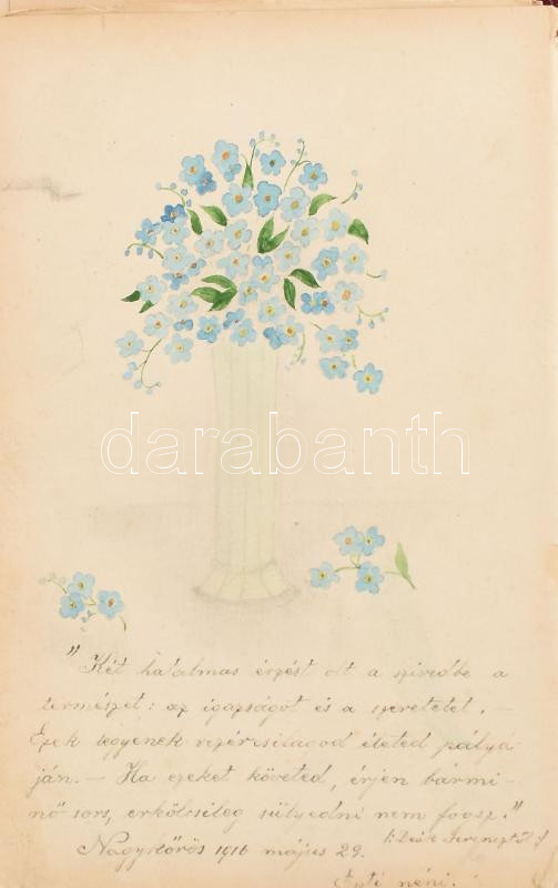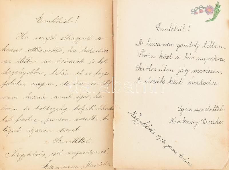 https://www.darabanth.com/en/435-Online-auction/435.0/Art-and-other-collectibles/Historical-documents-manuscripts~500020/1912-1916-Nagykoros-regi-emlekkonyv-bejegyzesekkel-rajzokkal-Kisse-viseltes-rezveretes-~II2822298