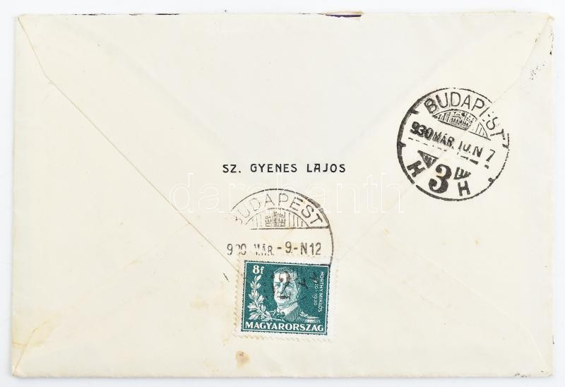 1930 Szentgyörgyvári Gyenes Lajos (1890-1971) festőművész, grafikus, a Magyar Képzőművészek Országos Szövetsége igazgatója, majd később ügyvezető elnökének autográf levele Sárdy Brutus (1892-1970) festőművész, restaurátorhoz, amelyben nyitott kérdéseket próbál tisztázni. Négy beírt oldal, Szentgyörgyvári Gyenes Lajos autográf aláírásával, eredeti borítékban.
