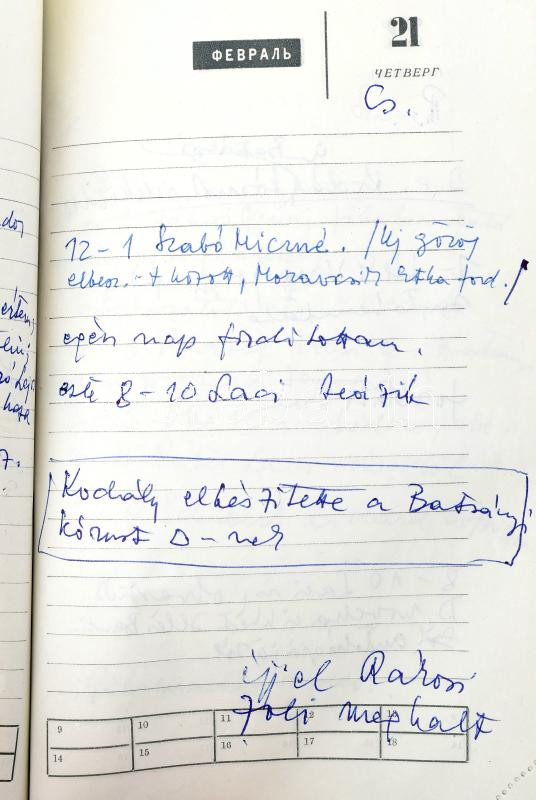 1963 Seiber Mária (19?-1975) zongoraművész, zenetanár, Keresztury Dezső (1904-1996) író, politikus feleségének előjegyzési naptára, számos érdekes bejegyzéssel Keresztury Dezső tevékenységére vonatkozóan valamint a kor kultúrális, szellemi életének meghatározó személyeinek említésével: Kodály Zoltán, Illyés Gyula, Bernáth Aurél, Borsos Miklós, Gink Károly, Képes Géza, Hubay Miklós, Boldizsár Iván, Hankiss Elemér, Fábri Zoltán, Újhelyi Szilárd stb. Műbőrkötésben. Kultúrtörténeti ritkaság!