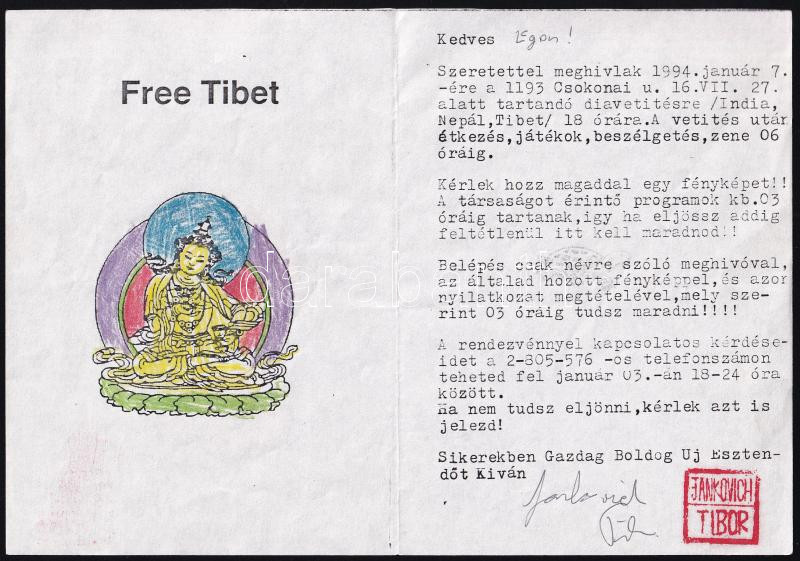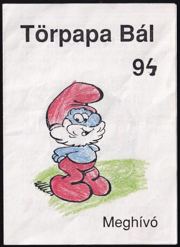 1994 Póka Egonnak címzett meghívó a "Törpapa bálra", fotóval