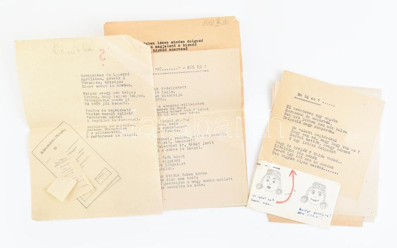 cca 1950 6 db humoros vers a belkereskedelmi minisztérium dolgozójától hivatali ügyekben, benne Dunapentele beruházást stb