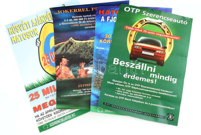 cca 1995 4 db LOTTÓ-OTP plakát, 42×29 cm
