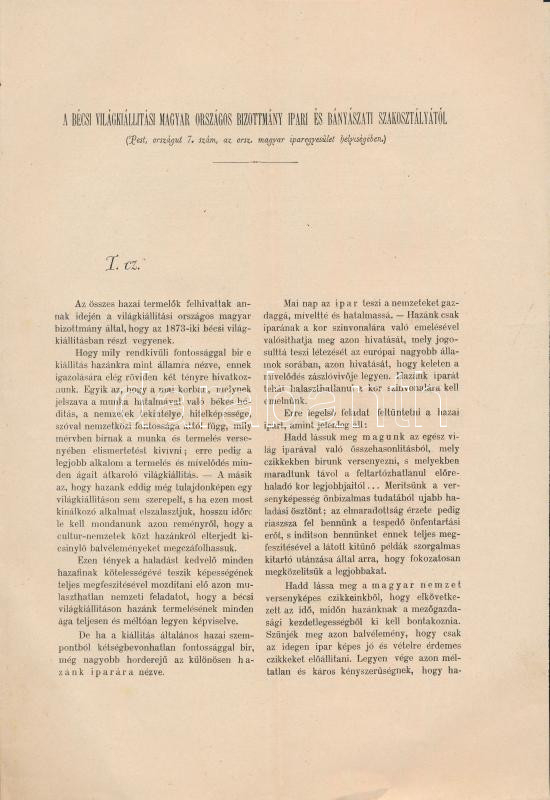 1872 Felhívás ipari és bányászati bizottmánytól a bécsi világkiállítással kapcsolatban