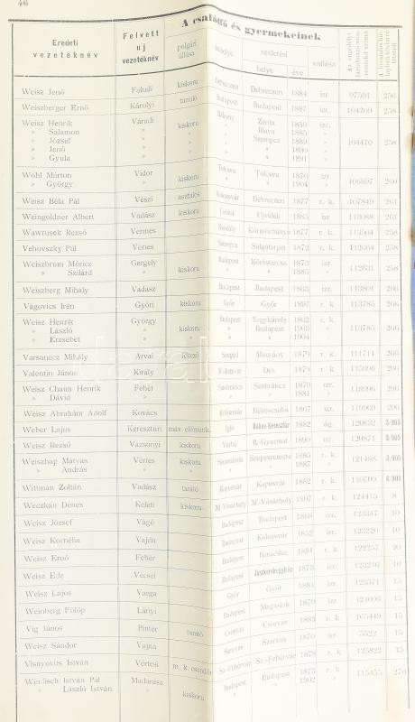 1904 Kimutatás az év II felében engedélyezett névváltoztatásokról vallási felekezet és állás feltüntetésével 46 p .