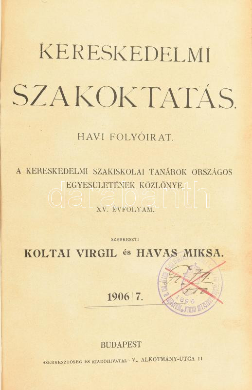 1906-1907 Kereskedelmi Szakoktatás c. havilap. XV. évf. 1, 4-10. sz. K... https://www.darabanth.com/en/435-Online-auction/435.0/Art-and-other-collectibles/Printed-Materials~2000003/1906-1907-Kereskedelmi-Szakoktatas-c-havilap-XV-evf-1-4-10-sz-Kopott-foltos-felvaszon-kC3~II2821224