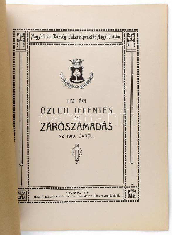https://www.darabanth.com/en/435-Online-auction/435.0/Art-and-other-collectibles/Printed-Materials~2000003/1913-Nagykorosi-Kozsegi-Takarekpenztar-uzleti-jelentese-14p~II2821325