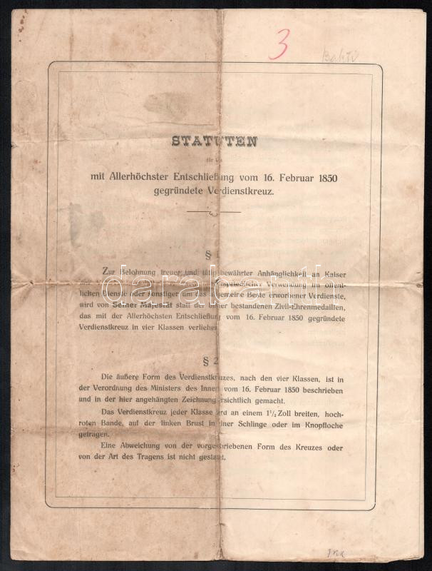 1914 Statuten für das mit Allerhöchster Entschliessung vom 16. Februar... https://www.darabanth.com/en/435-Online-auction/435.0/Art-and-other-collectibles/Printed-Materials~2000003/1914-Statuten-fur-das-mit-Allerhochster-Entschliessung-vom-16-Februar-1850-gegrundete-Verdienstk~II2817107