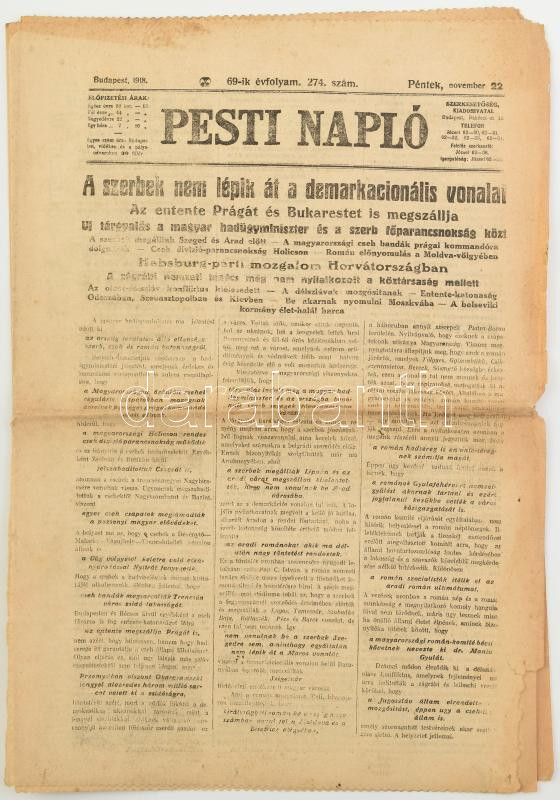 1918 Pesti Napló 69. évf. 274. sz., 1918. nov. 22., a címlapon az I. v... https://www.darabanth.com/en/435-Online-auction/435.0/Art-and-other-collectibles/Printed-Materials~2000003/1918-Pesti-Naplo-69-evf-274-sz-1918-nov-22-a-cimlapon-az-I-vilaghaborus-fegyverlete~II2812948