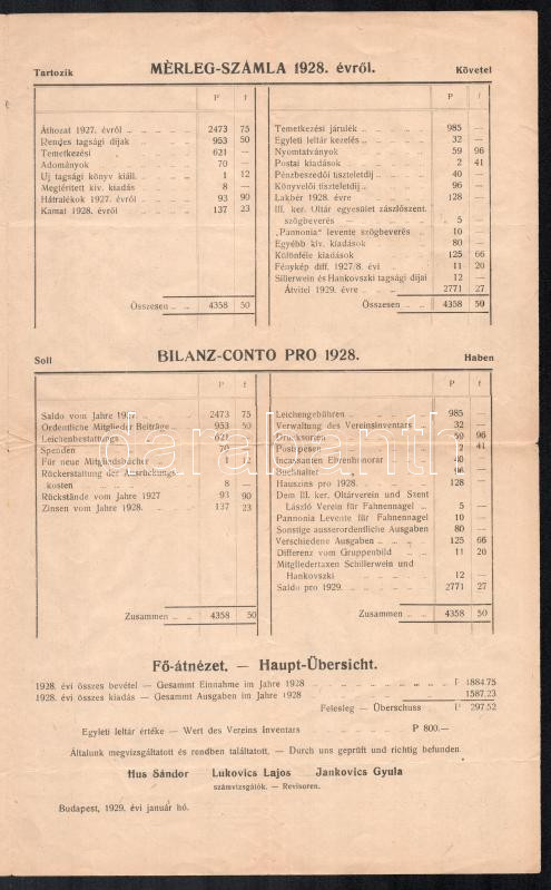 1929 DDSG Első Dunagőzhajózási Társaság Gőzhajókormányozainek Betegsegélyező és temetkezési egylete közgyűlési meghívó napirendek