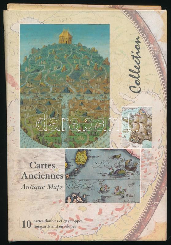 Cartes Anciennes - régi térképeket ábrázoló modern képeslap összeállítás tékával
