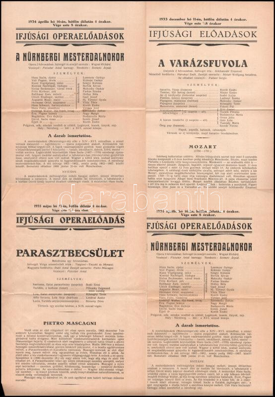 cca 1933-38 Ifjúsági opera- és színházelőadások ismertető füzetei, 8 db, részben kisebb szakadásokkal, 21x17 és 24x16 cm