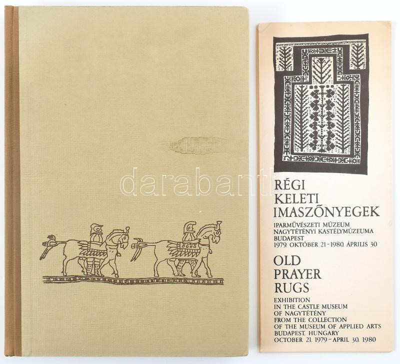 Description: Ledács Kiss Aladár, Szüts Béláné: Ismerjük meg a keleti szőnyegekett. Bp., 1963, Gondolat. Első kiadás. Számos fekete-fehér és színes képpel illusztrálva. Kiadói félvászon-kötés, kissé foltos borítóval. + 1980 Régi keleti imaszőnyegek. Kiállítási prospektus. Bp., Iparművészeti Múzeum.
