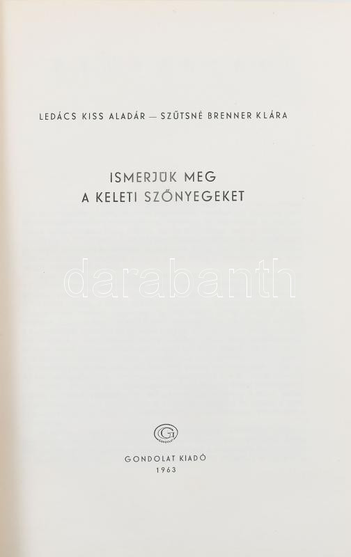 Ledács Kiss Aladár, Szüts Béláné: Ismerjük meg a keleti szőnyegekett. ... https://www.darabanth.com/en/435-Online-auction/435.0/Books/Books-Architecture-Art~2000010/Ledacs-Kiss-Aladar-Szuts-Belane-Ismerjuk-meg-a-keleti-szonyegekett-Bp-1963-Gondolat-E~II2813123