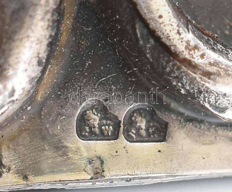 Description: Bécsi ezüst (Ag) csukát ábrázoló dugó dísz. Jelzett, mesterjegyes 123 g, 8 cm / Vienna silver cork ornament with pike-fish on top. Marked, hallmarked 123 g, 8 cm