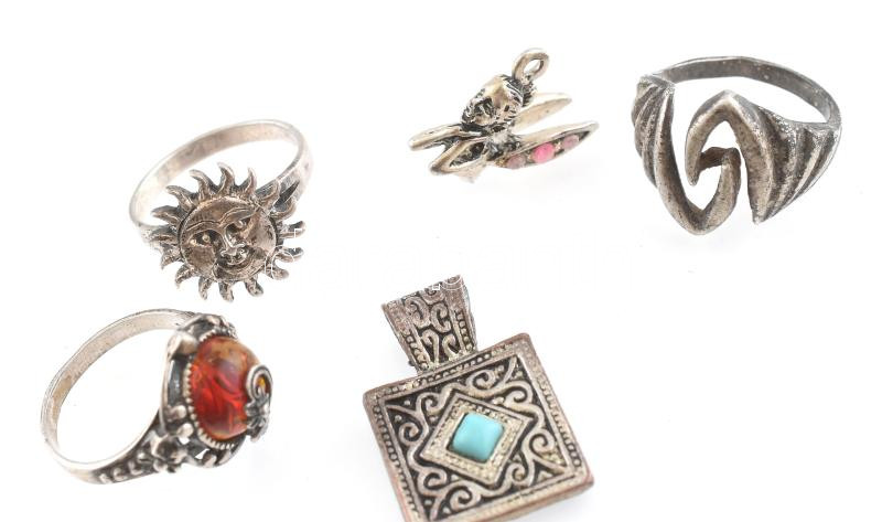 Ezüst (Ag) vegyes ezüst ékszerek, részben jelzett, bruttó: 68 g