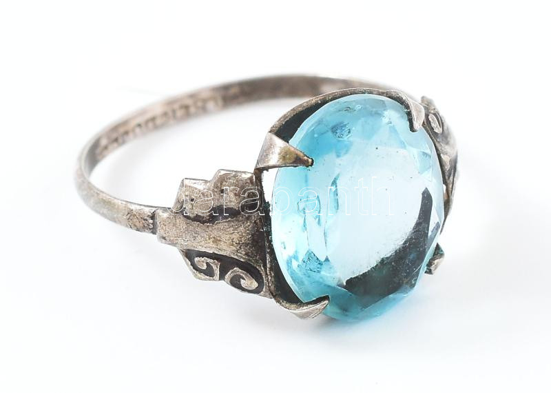 Ezüst (Ag) világoskék köves gyűrű, bruttó: 1,8 g, m: 50-51