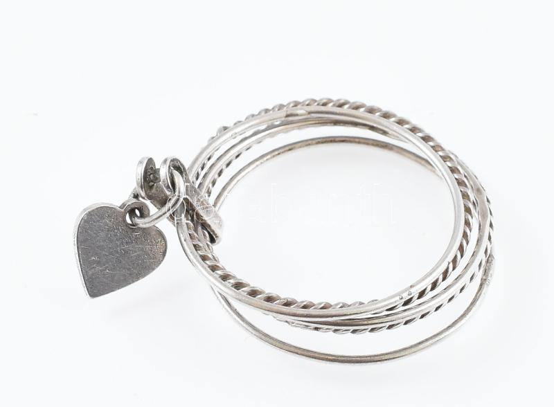 Ezüst(Ag) 5 részes szíves gyűrű, jelzés nélkül, méret: 57, nettó: 2 g