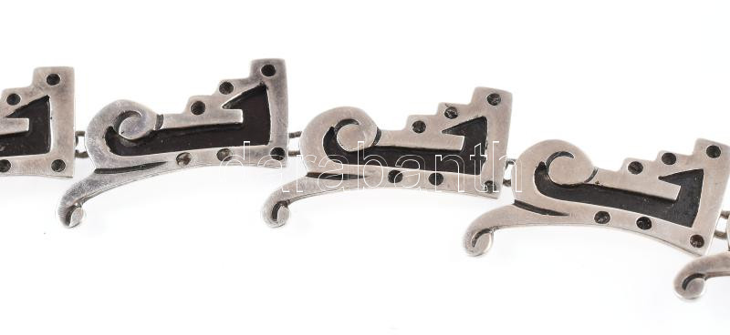 Ezüst(Ag) karkötő fekete díszítéssel, jelzett, h: 21 cm, bruttó: 25 g