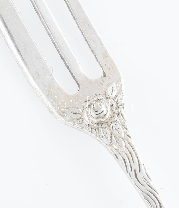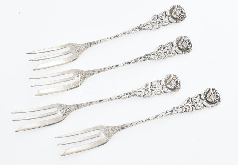 Ezüst(Ag) rózsás nyelű desszertes villa, 4 db, jelzett, h: 14 cm, nettó: 67,7 g