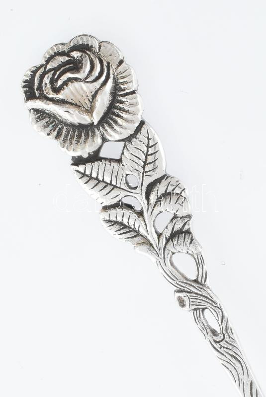 Ezüst(Ag) rózsás nyelű desszertes villa, 4 db, jelzett, h: 14 cm, nett...