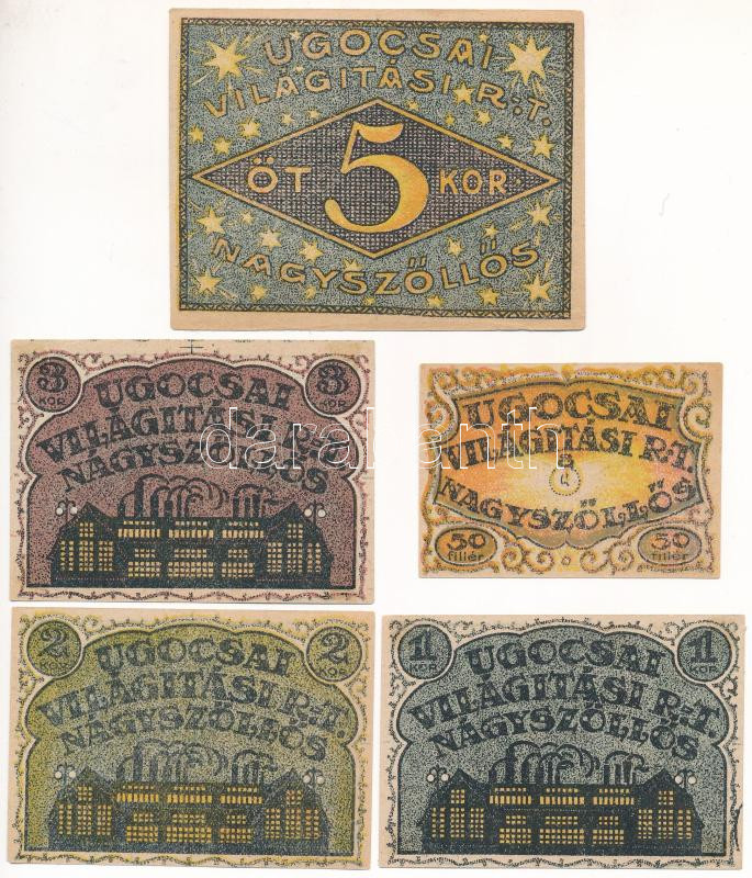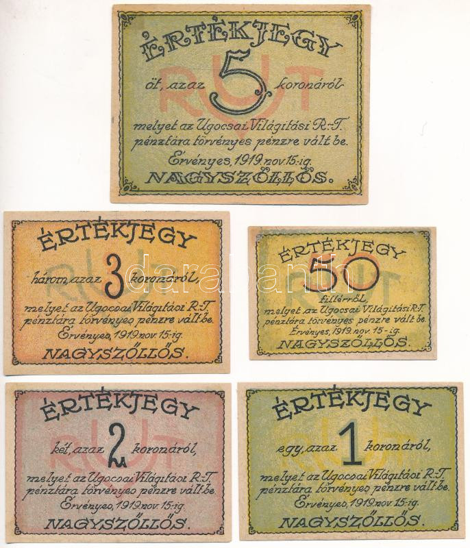 https://www.darabanth.com/en/435-Online-auction/435.0/Numismatics/Emergency-Coins-and-Notes~1000006/Nagyszollos-1919-50f-plus-1K-plus-2K-plus-3K-plus-5K-Ugocsai-Vilagitasi-Rt-ertekjegy-TI-ragasztony~II2779922