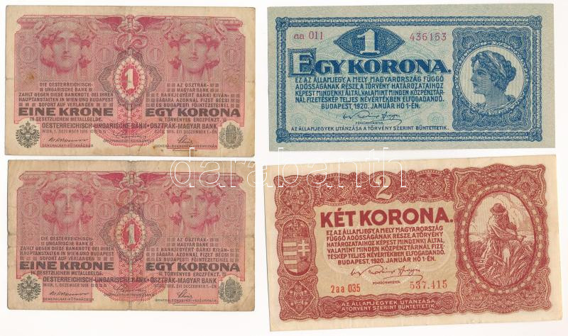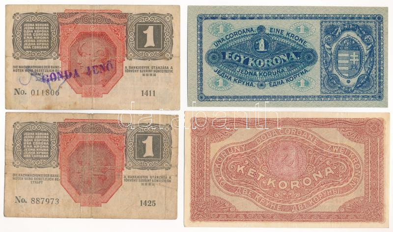 1916. 1K (2x, egyik "GONDA JENŐ" felülbélyegzéssel) + 1920. 1K + 2K "2aa" T:I--III-