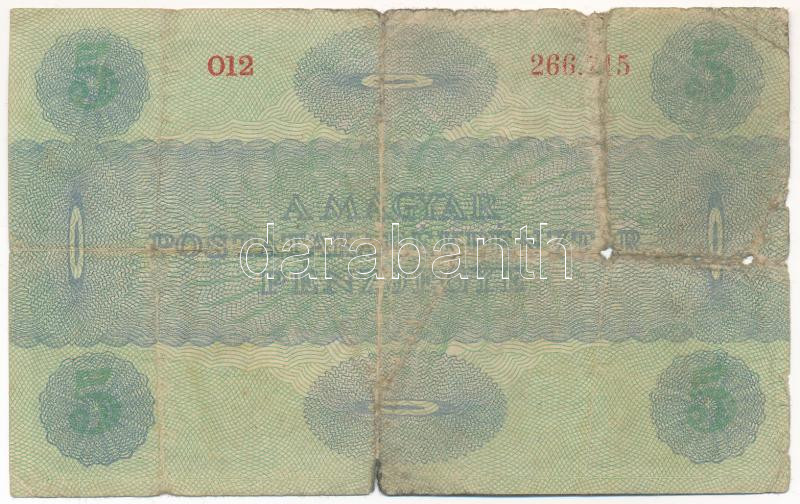 https://www.darabanth.com/en/435-Online-auction/435.0/Numismatics/Hungarian-Banknotes~1000007/1919-5K-012-266245-OSZTRAK-MAGYAR-BANK-BANKJEGYEIRE-TIII-kis-szakadasok-anyaghiany-Adam~II2819611