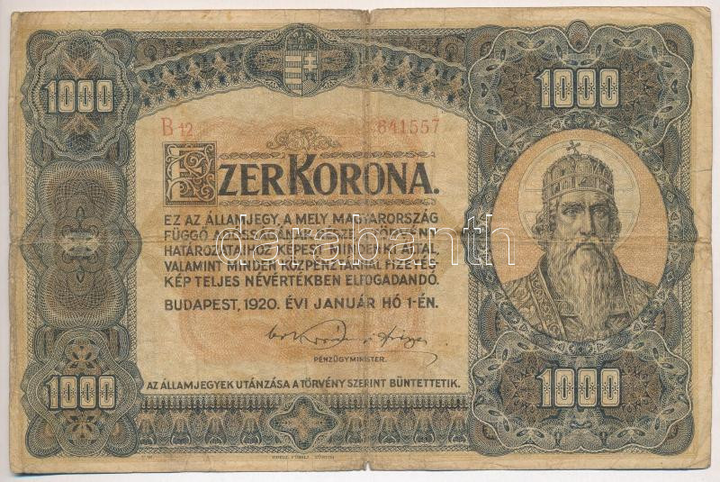 https://www.darabanth.com/en/435-Online-auction/435.0/Numismatics/Hungarian-Banknotes~1000007/1920-1000K-Orell-Fussli-Zurich-nyomdahely-jelolessel-B12-641557-TIII-III-kis-szakadasok~II2822336